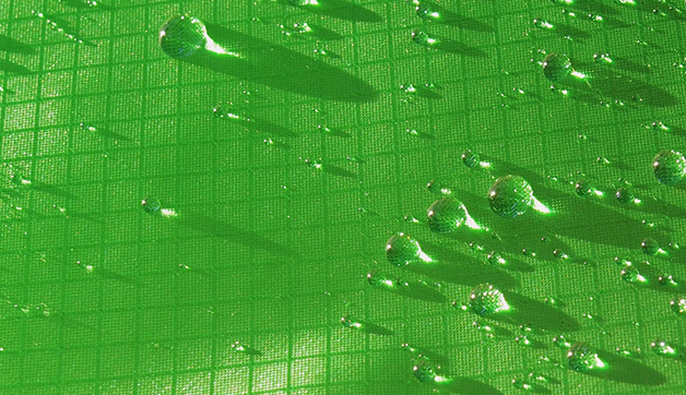 生地の表面をシリコン樹脂・フッ素樹脂をコーティングして玉状になって水を弾く加工です。